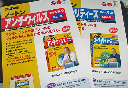 大昔にもらったノートンアンチウィルスとユーティリティーズのMac版のチラシが出てきたので掲載。地味なデザインですわね。