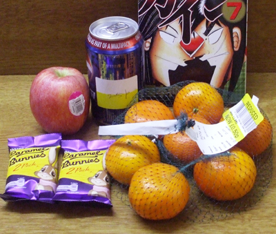 日曜で、店じまいも早いので、またスーパーでなんか晩飯買って帰還。