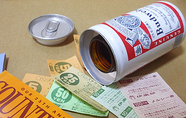 たしか「実際のバドワイザーと同じ缶で同じ重さ(中にセメントかなんか詰めてあってビンが入ってる)だから、持ってもバレない」と雑誌に書いてあった。